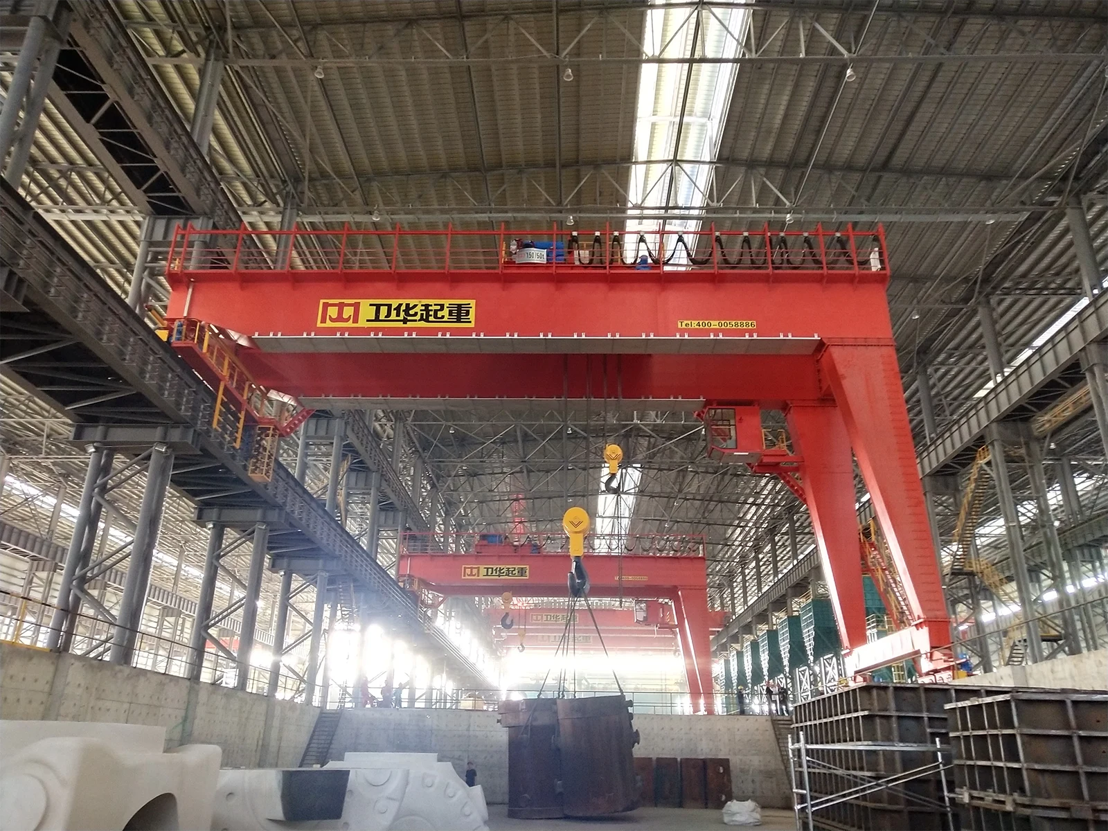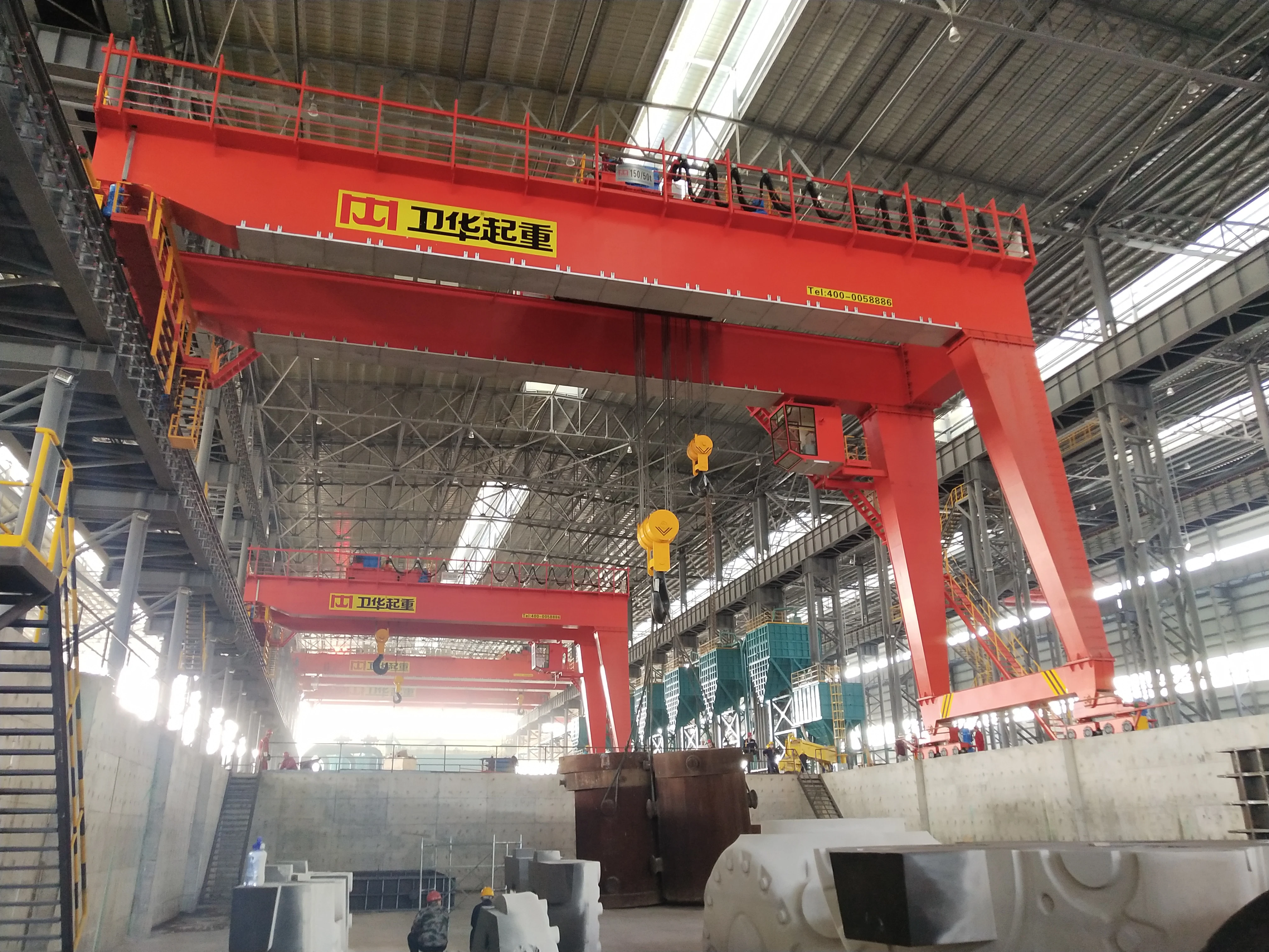 Weihua single girder semi gantry crane is equipped with a CD1 MD1 electric hoist as lifting mechanism, while double girder semi gantry crane is equipped with a trolley as lifting mechanism. And the girder can box beam or lattice girder for customer's option. The spreader also can be many different types. For example, we provide electromagnetic hanging beam as spreader for lifting steel pipes or steel sheet.